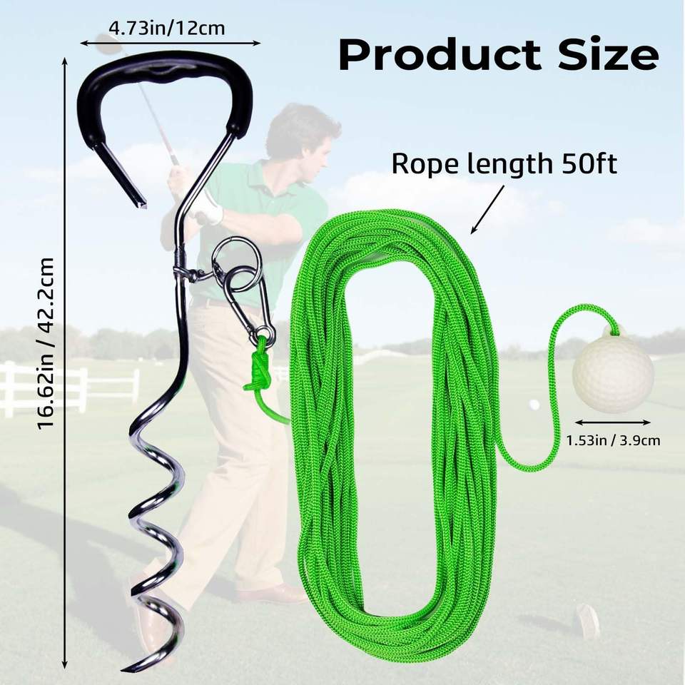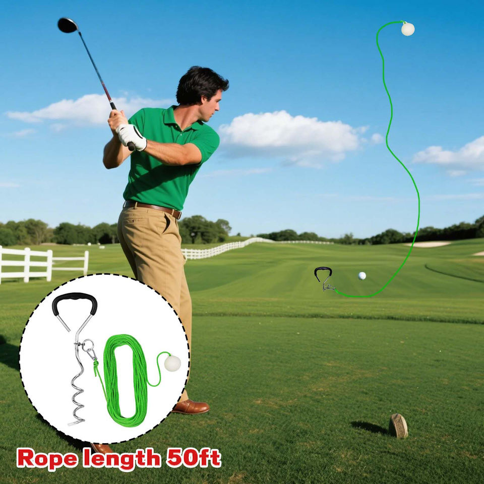 Entrenador de Swing de Golf con Cuerda de 50 pies, Soporte para Pelota Real, Color Verde, Plegable, para Zurdos/Diestros, para Principiantes