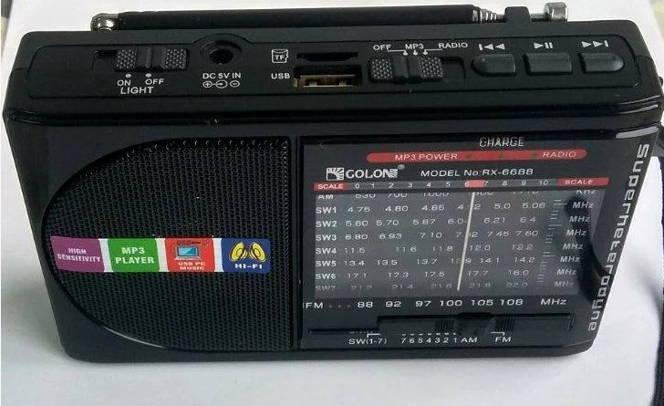Receptor de Radio Golon Rx-6688, Superpotente, Batería Recargable, Reproductor USB/TF, Radio Portátil USB MP3, FM AM SW1-7, 9 Bandas