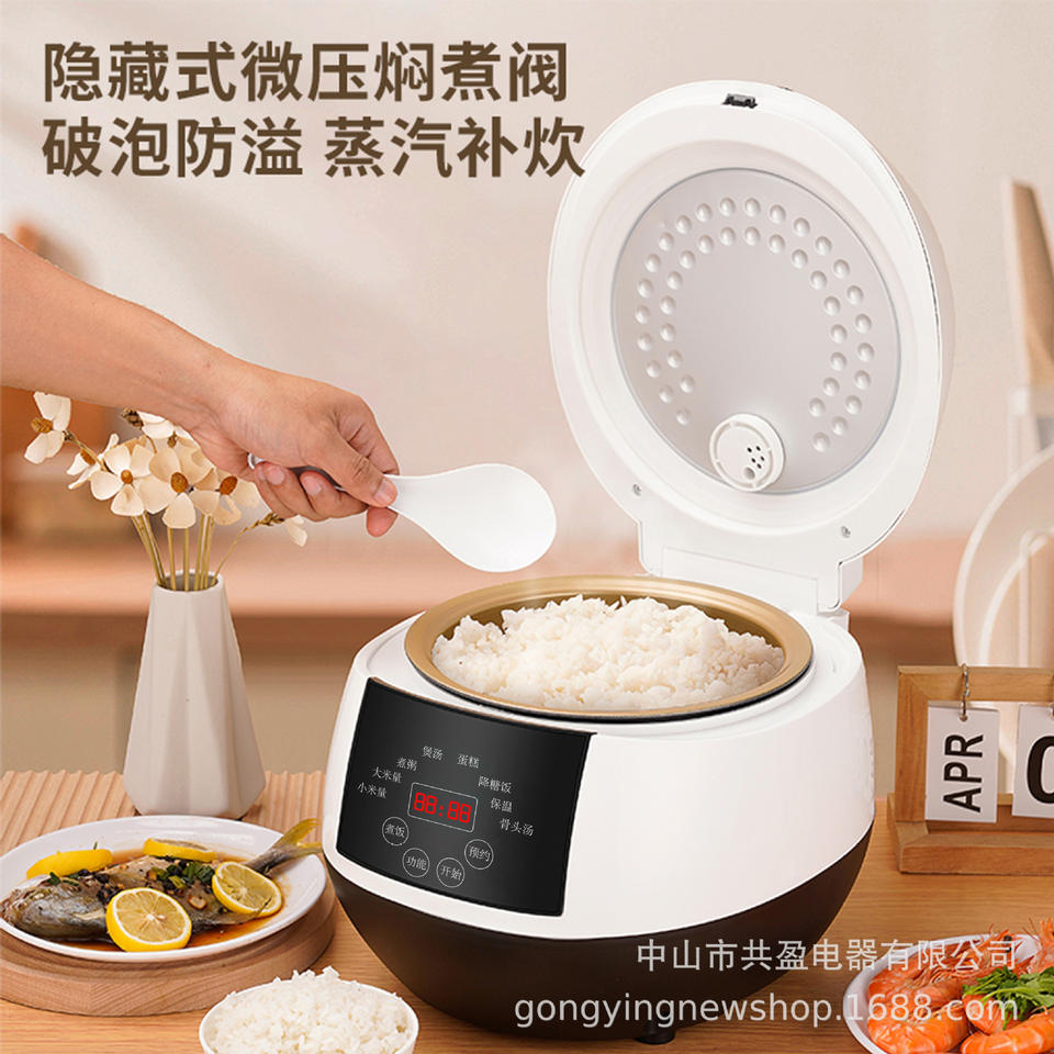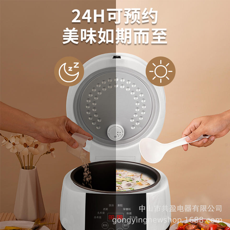 Olla Arrocera Eléctrica Inteligente Gongying de 5L con Temporizador para Sopa y Cocción al Vapor, Función de Reserva de 24H, en Blanco y Negro