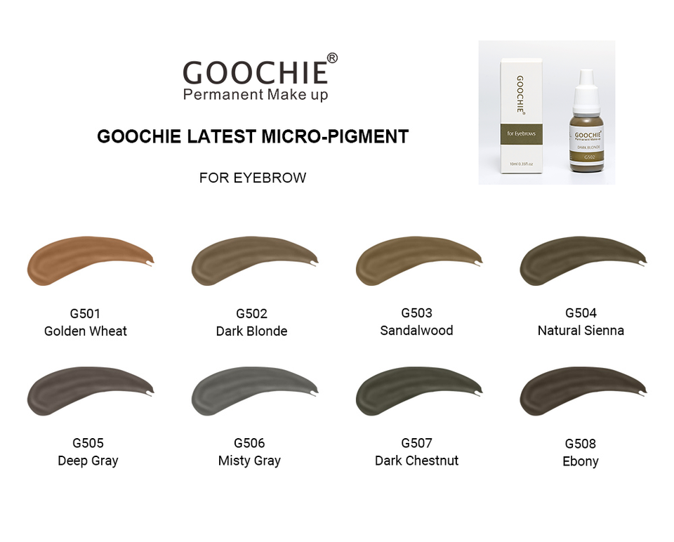 Goochie nuevo 8 colores personalizados Micro crema pigmento 10ml cejas Microblading maquillaje permanente pintura PMU Tatoo tinta