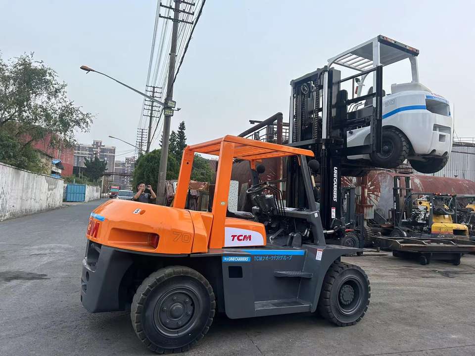 Montacargas TCM Usado de 7 Toneladas en Buen Estado y Alta Calidad, Fabricado en Japón, con Estructura de Puente de Tres Secciones, Importado, 3, 5, 7 y 10 Toneladas