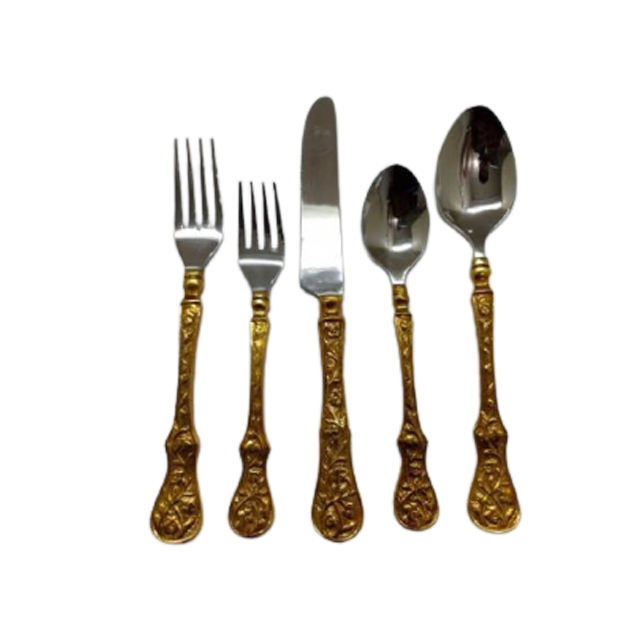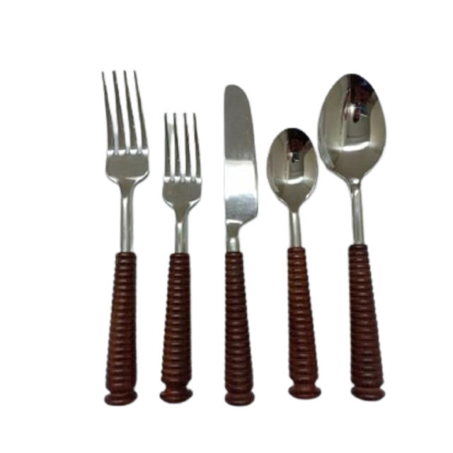 Juego de Cubiertos de Diseño Elegante, Cubiertos de Acero Inoxidable Plateado de Alta Calidad, Juego de Cubiertos de Lujo de Resina Marrón de Diseño
