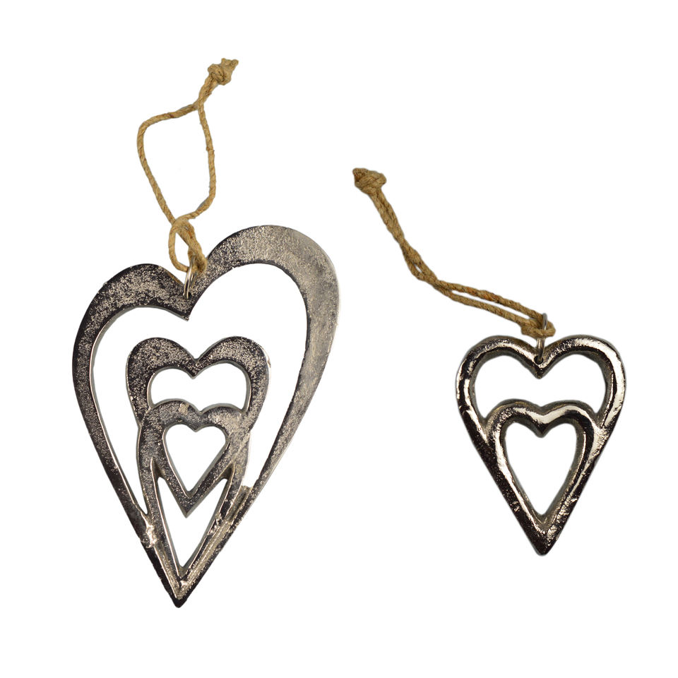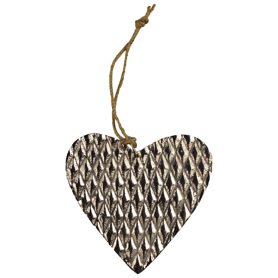 Adorno metálico con forma de corazón para decoración de sala de estar, diseño colgante con acabado Chapado en plata, diseño simple