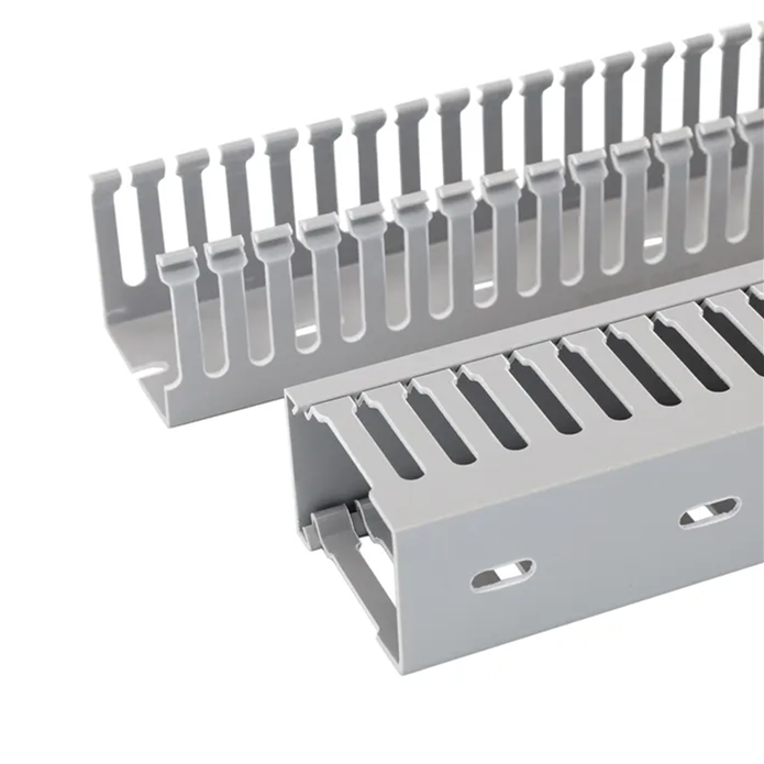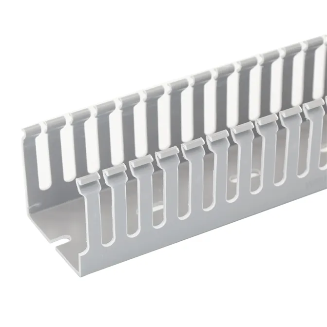 Conducto de cable de ranura abierta de PVC resistente al fuego gris de buen aislamiento Conductos de cableado ranurados impermeables para el hogar