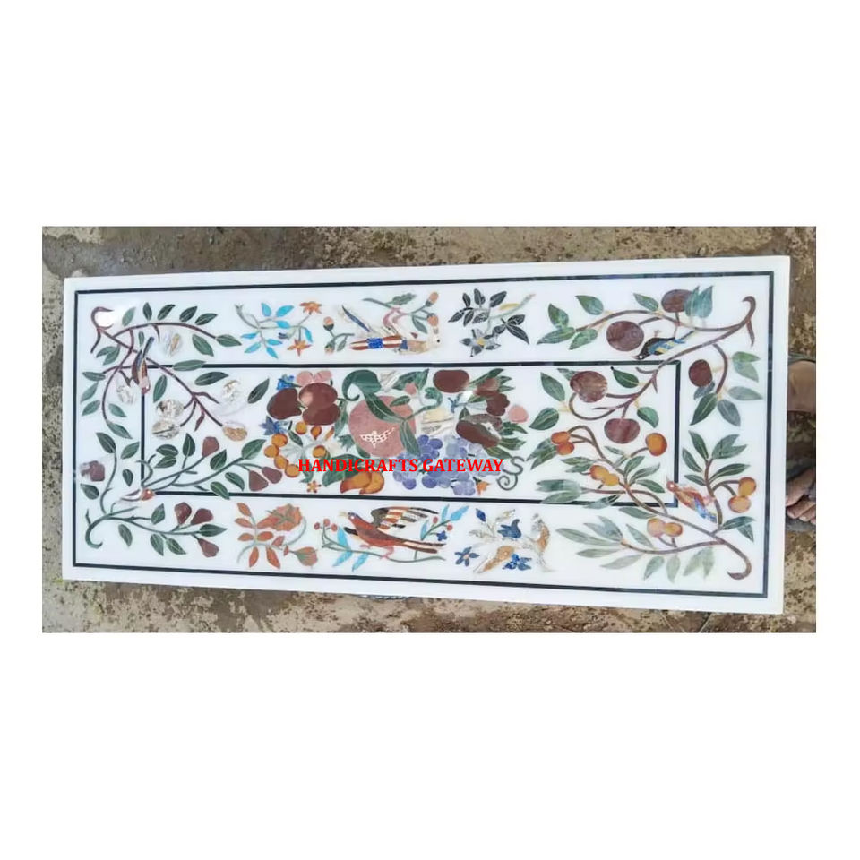 Buenos diseños y nuevos diseños de forma rectangular con acabado fino y uso superior de mesa con incrustaciones de mármol blanco pulido para decoración del hogar