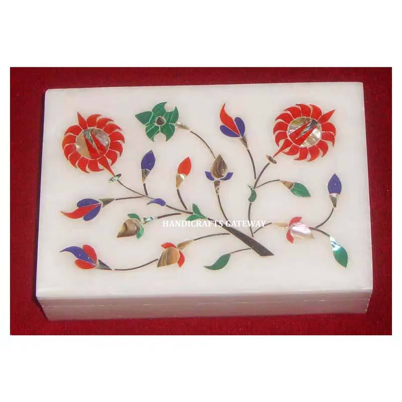 Joyero de buen aspecto Caja de incrustaciones de mármol blanco de diseño creativo hecho a mano en forma rectangular para uso multiusos de mayorista