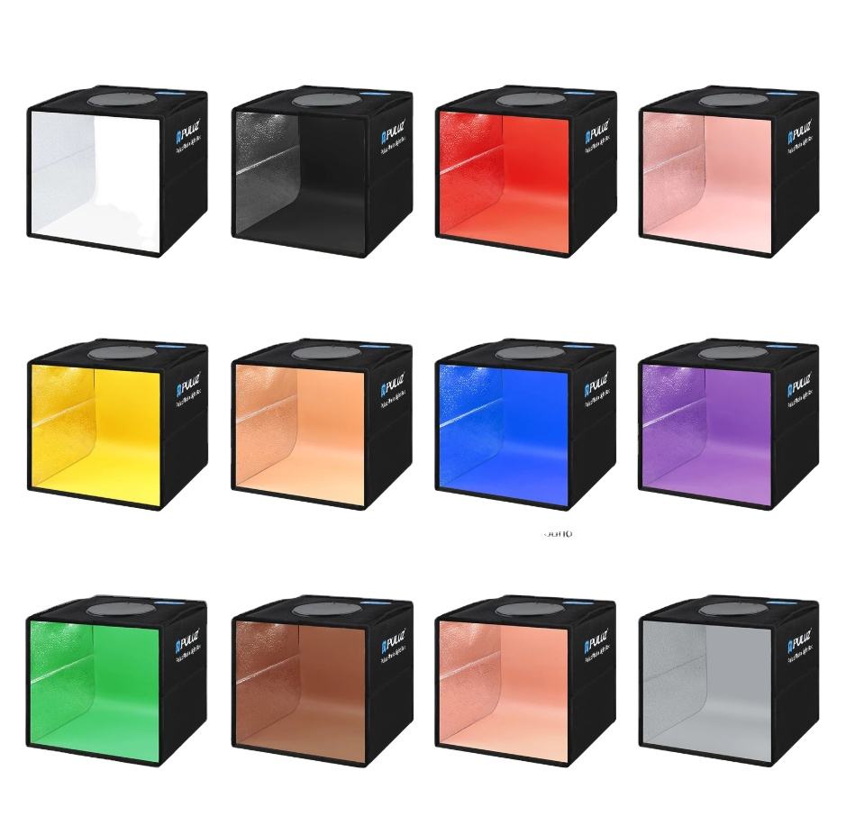 Caja de Luz LED PULUZ PU5041b para Estudio Fotográfico, 40cm, Kit de Caja de Luz para Fotografía de Escritorio, con 6/12 Fondos de Colores