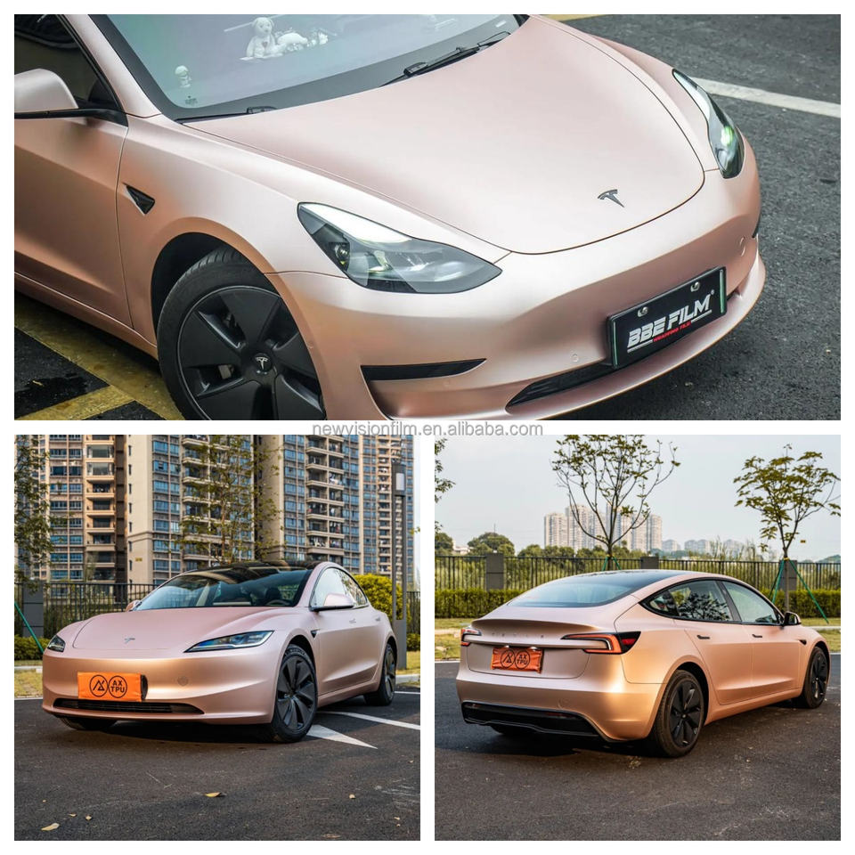 Vinilo Adhesivo para Autos a Buen Precio, Rollo de Vinilo para Protección de Pintura, Color Oro Rosa Mate, Película Protectora para Carrocería Completa, Recubrimiento PPF