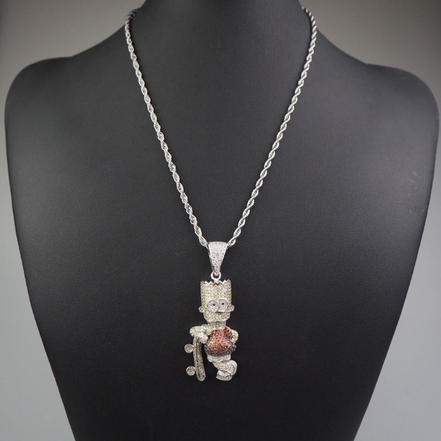 Colgante de Cobre con Circonita Cúbica de Corte Brillante Redondo 5A, Diseño de Simpson, Joyería Hip Hop Personalizada a Buen Precio