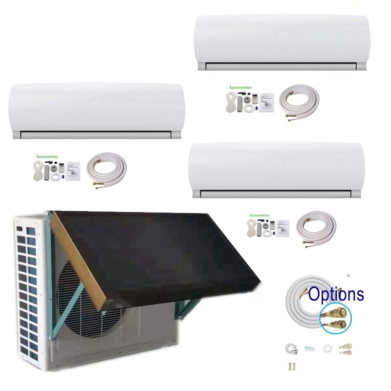 Buen Precio, Inversor de Corriente Continua, Tri-Zona 12000+12000+12000, Multi 22 SEER, Mini Split sin Ductos, Bomba de Calor Eléctrica de Aire Acondicionado para Uso en Habitaciones de Hotel