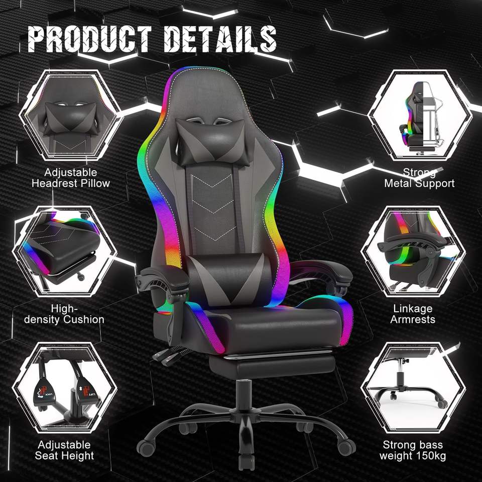 Silla reclinable de cuero para ordenador de carreras PC multifunción a buen precio, silla Led barata para juegos con reposapiés y masaje