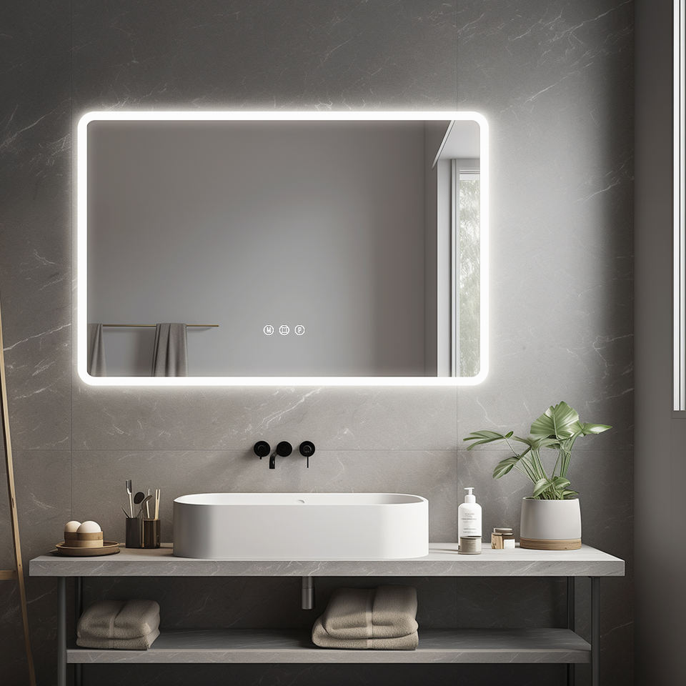 Espejo LED de baño con montaje en pared y función antivaho a buen precio para el hotel Hilton