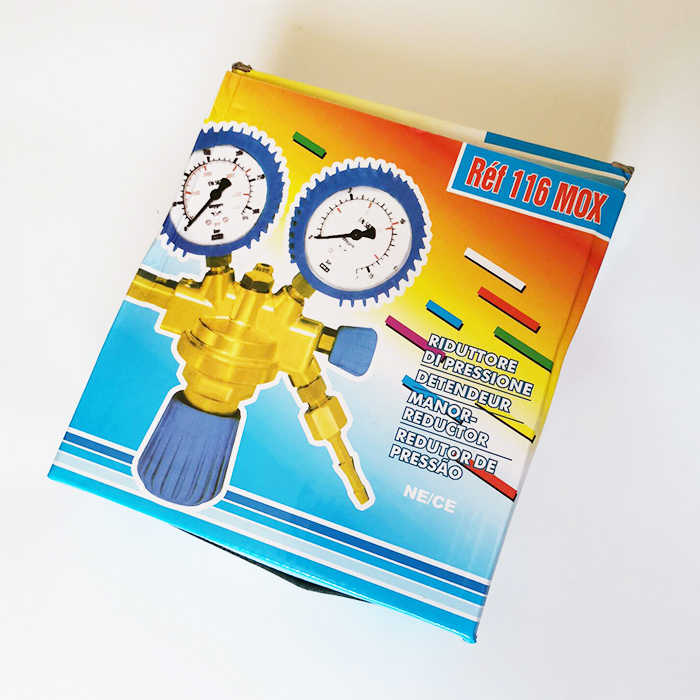 Propane pressure regulator in white box. than 10 pcs in a carton