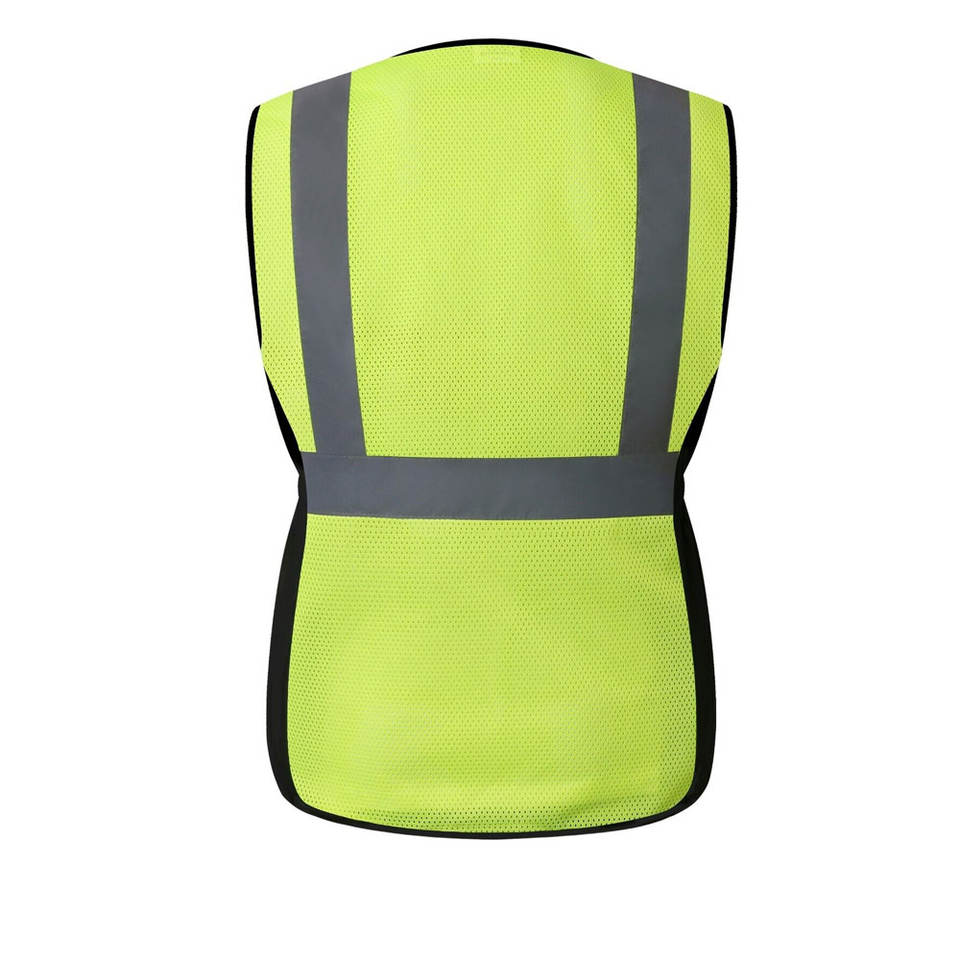 Chaleco de seguridad de buena calidad, personalizado con sus colores, hecho con tela resistente y cierre de cremallera frontal de alta resistencia.