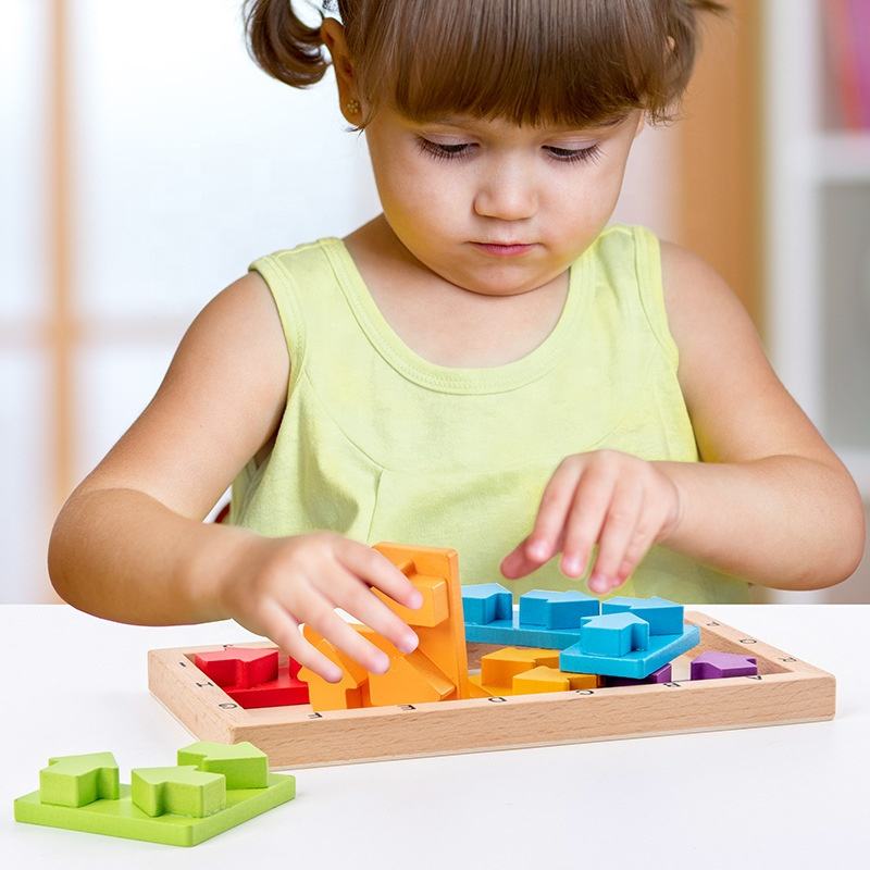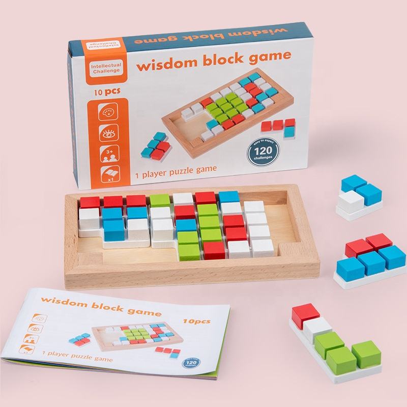 Buena Calidad Dirección Cognitivo Juego Apilamiento Bloques Juguete Madera Cuadrado Rompecabezas Bloque Kindergarten Madera Bloques de Construcción