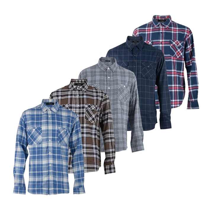 Camisas de franela azul informales clásicas suaves ecológicas de buena calidad para hombres 100% algodón de manga larga