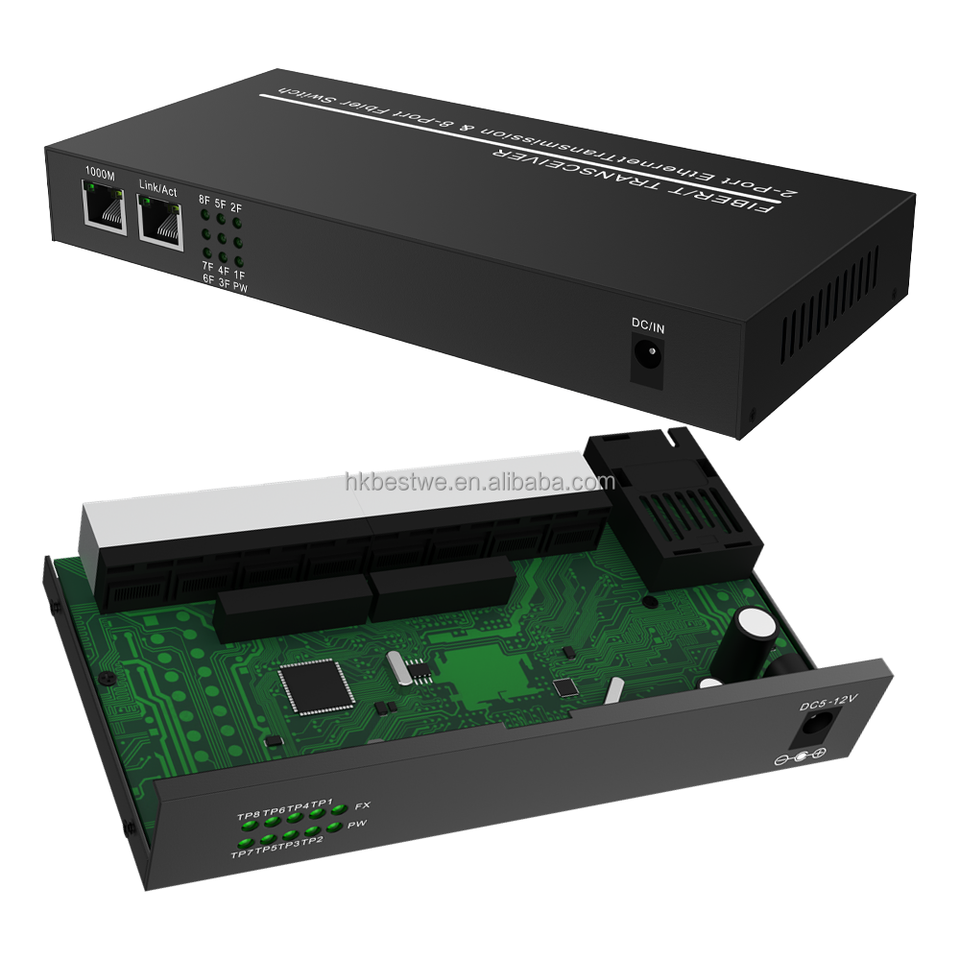 Conmutador de Fibra Óptica de Buena Calidad, 8 SC 2 100M RJ45, Conmutador Ethernet, Conversor de Medios