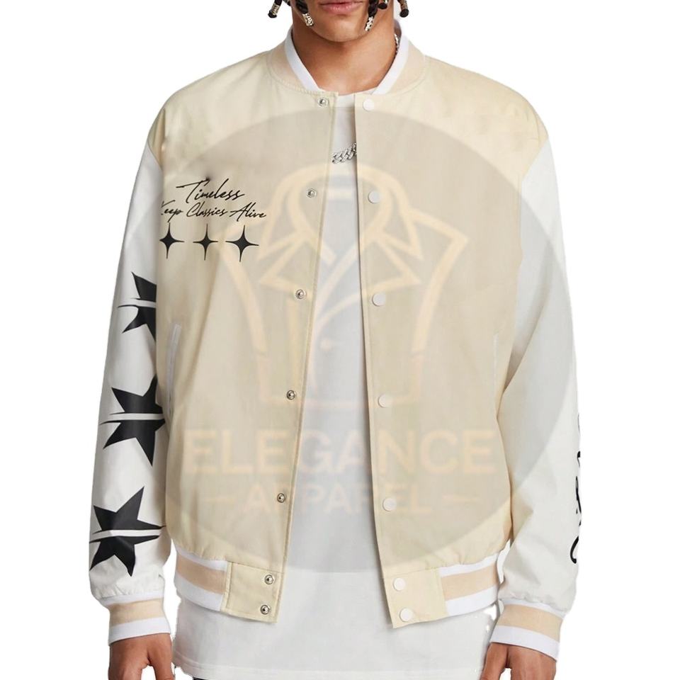 Chaquetas universitarias de béisbol de alta calidad, venta al por mayor, tasa de primavera y otoño, bloque de Color, contraste, estrella, letra impresa, lienzo con soporte