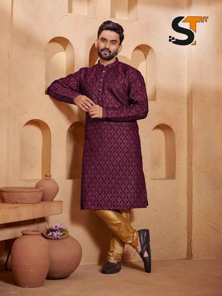 Product Name:Good Quality Jacquard with Pintex Tie Kurta Pajama