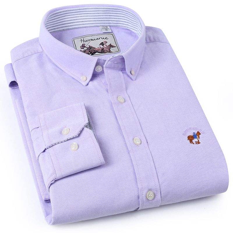 Botón abajo cuello puro algodón casual sólido Oxford camisas para hombres
