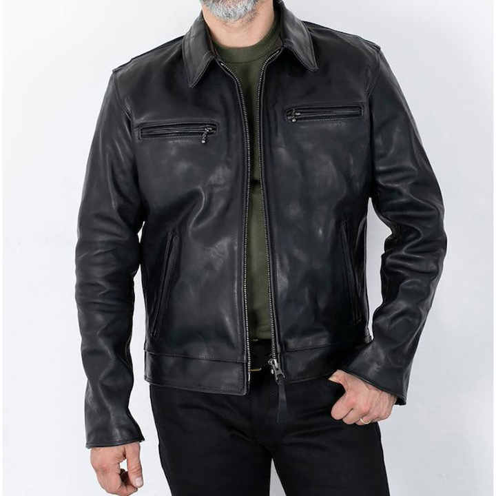 Chaqueta de Motociclista de Alta Calidad, Estilo Urbano, Resistente al Viento, con Cuello Caído, Chaqueta de Cuero para Hombre