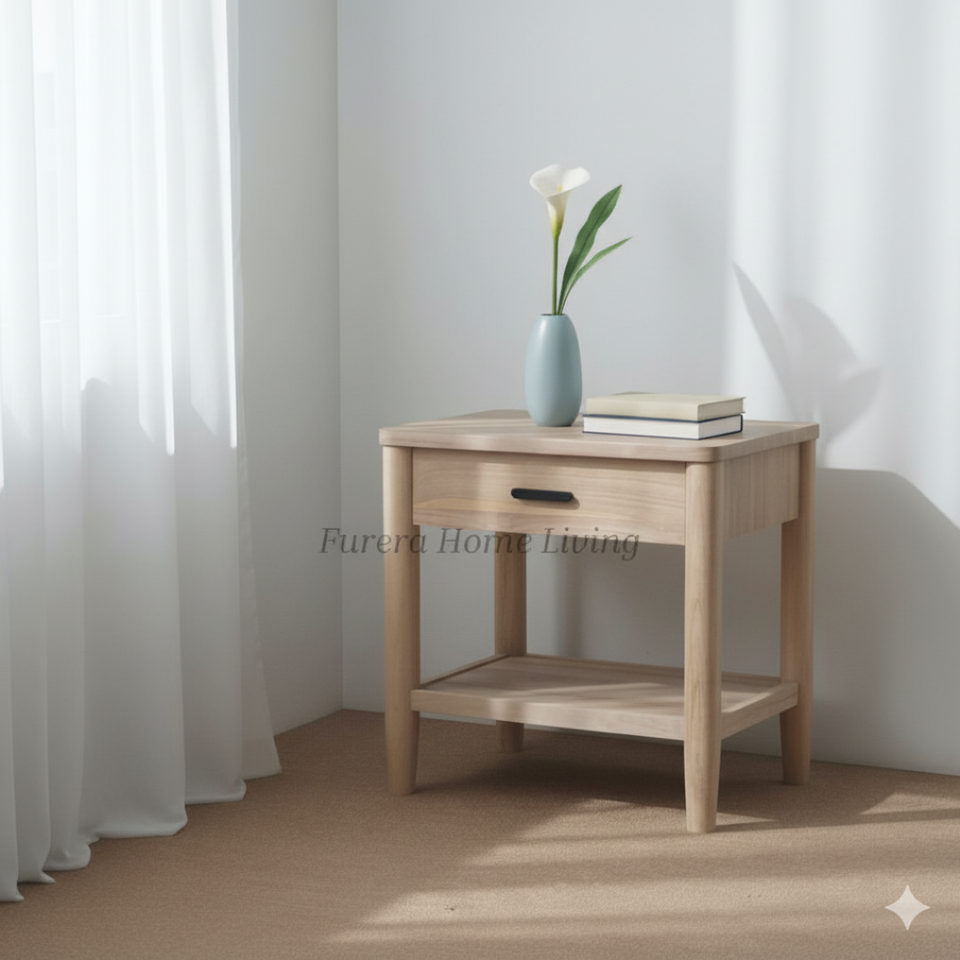 Mesita de Noche Lyne de Buena Calidad, con un Cajón, Madera Maciza Ecológica, Altura Ajustable, Estilo Moderno Clásico de Lujo, Color Gris Lavado, para Apartamento