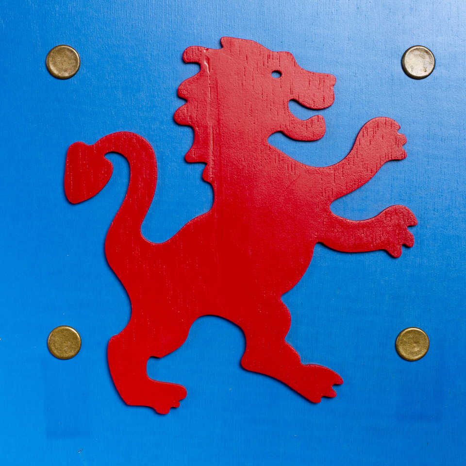 Escudo de madera hecho en España decorativo único hecho a mano de buena calidad Kamelot L azul para niños