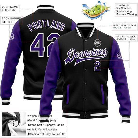 Chaquetas de Béisbol para Hombre de Buena Calidad con Mangas de Cuero / Chaqueta Universitaria de Cuero Acolchada Cortavientos de Manga Larga al por Mayor