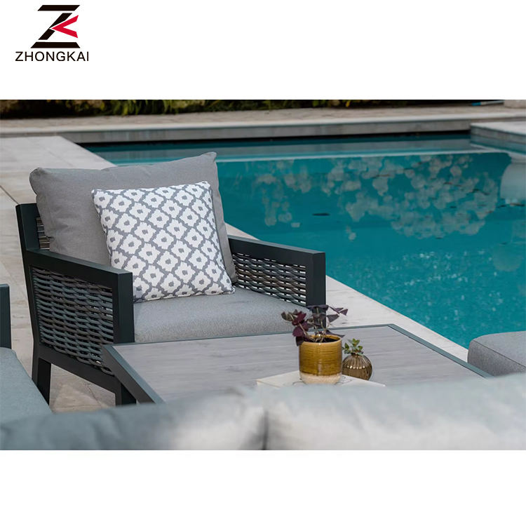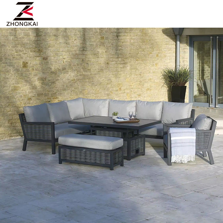 Buena calidad cuerda de ratán aluminio al aire libre sofá ratán mimbre Patio jardín conjunto mesa elevadora para hoteles parques