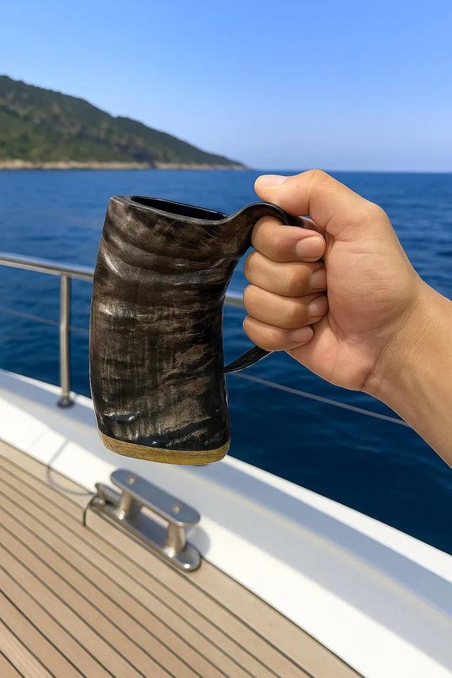 Jarra de Cuerno Rústica de Buena Calidad para Cerveza, Sidra, Whisky o para Fiestas y Celebraciones, Disponible para Suministro al por Mayor