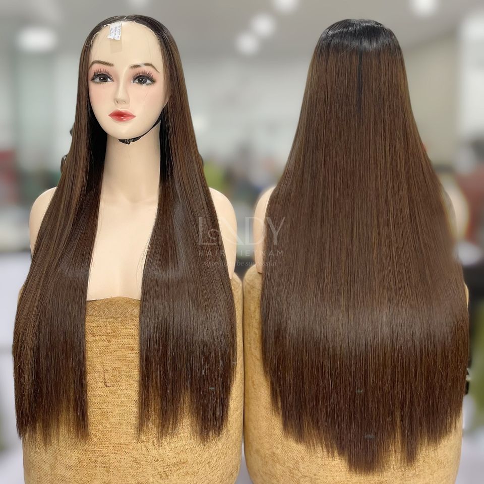 De Buena Calidad Super Doble Dibujo Hueso Del Pelo Recto Color Marrón Pelucas Hermosas Pelucas Para Mujeres Negras