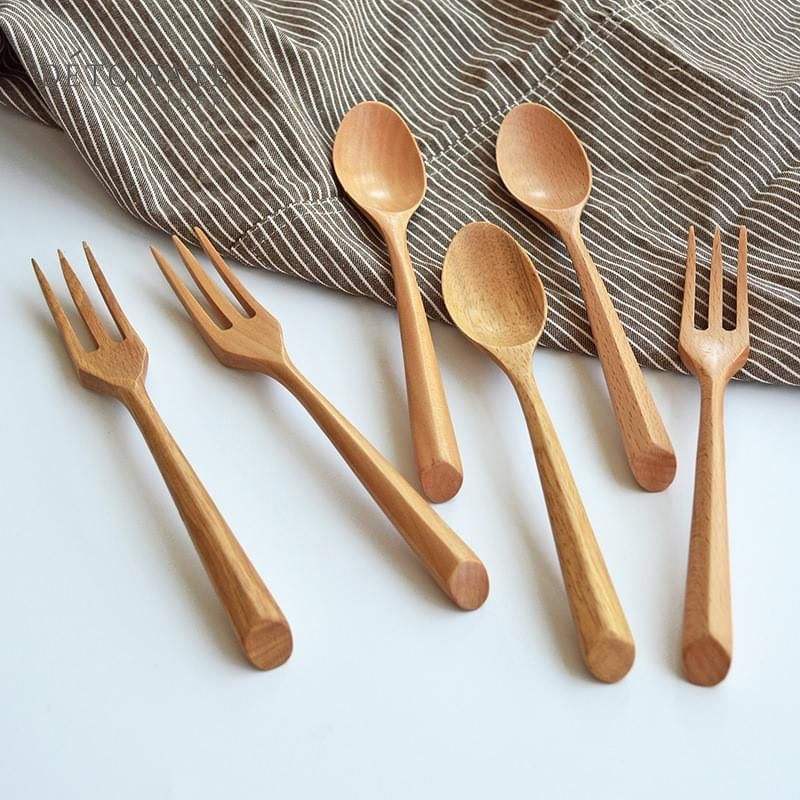Juego de cubiertos de madera