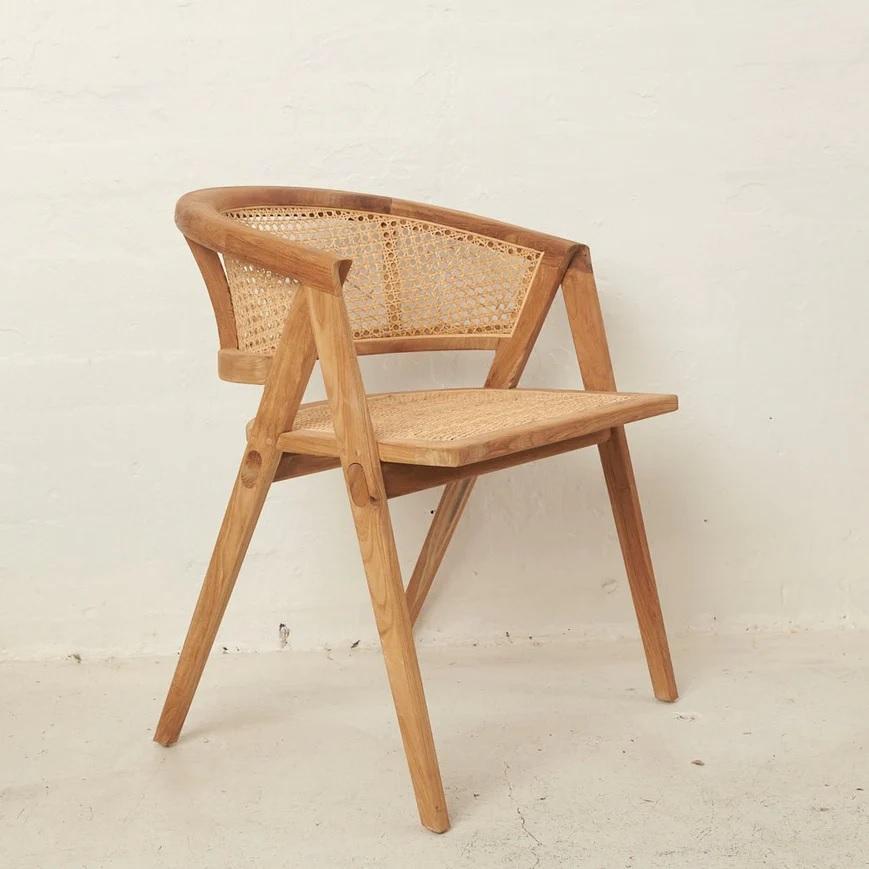 Nombre del producto:Silla de Comedor de Madera con Diseño de Ratán Natural
