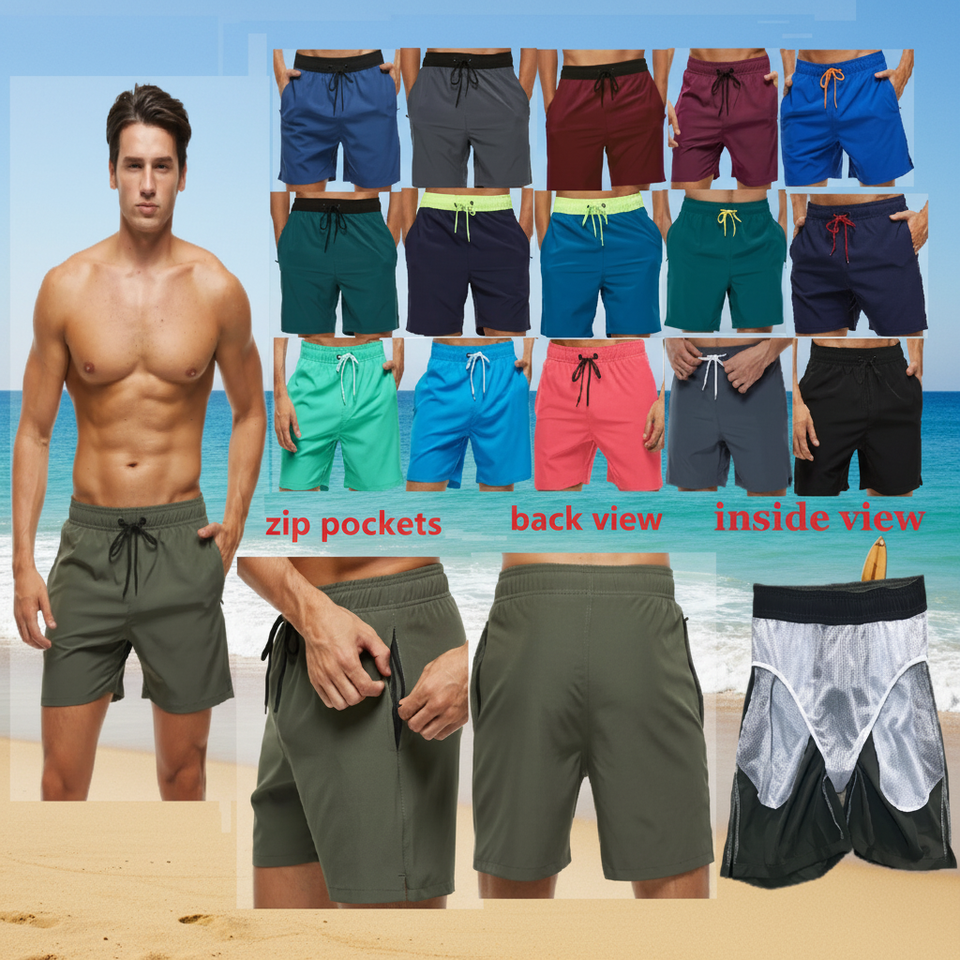 Pantalones Cortos de Playa Deportivos para Hombre, Tejidos, de Cintura Media, con Bolsillos con Cremallera, Cintura Elástica, Tela Elástica en Cuatro Direcciones, Color Sólido, con Buenas Reseñas