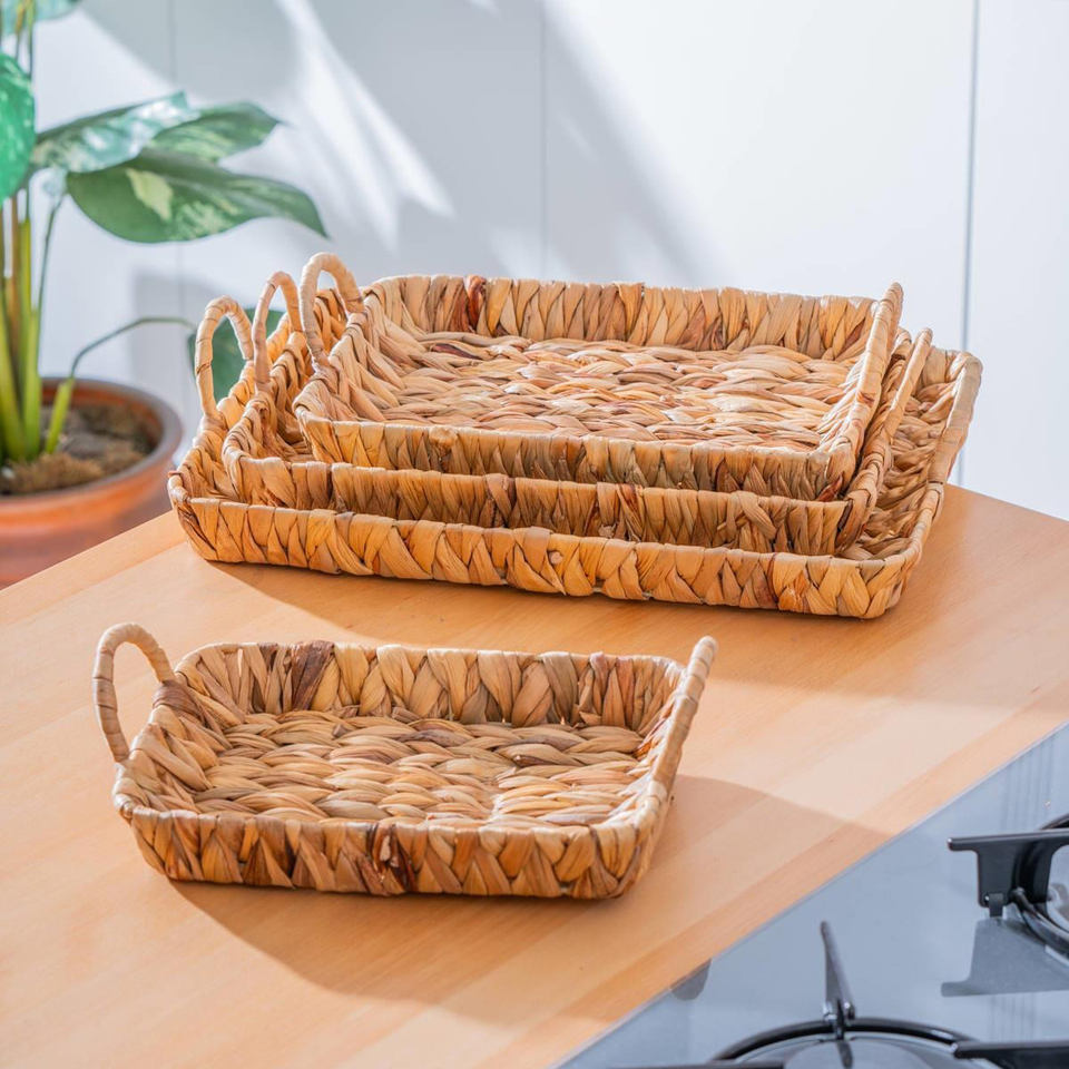 Bandeja rectangular de jacinto de agua, buena elección para almacenamiento y decoración del hogar, bandejas naturales tejidas a mano.