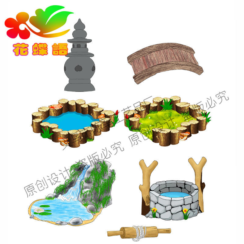 Buena calidad chenjun paisaje Retro resina antigua escena decoración West Lake faro bien piscina puente hierba que fluye