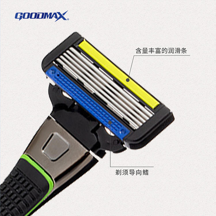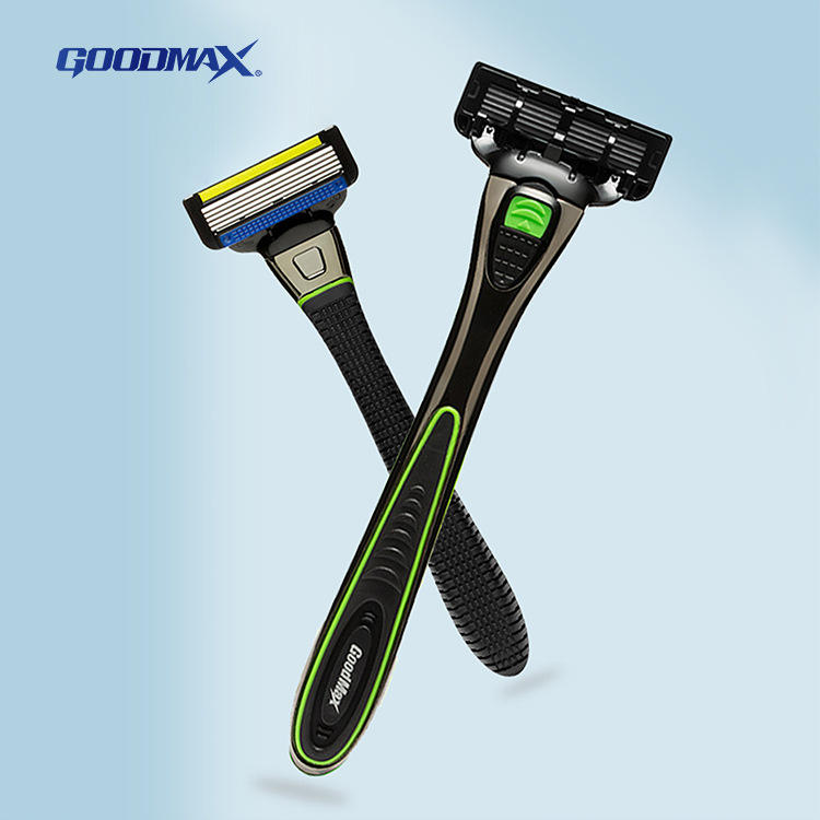 Maquinilla de Afeitar Manual Goodmax Windrunner de 5 Cuchillas, Negra y Verde, Totalmente Lavable, Ligera (39g), para Hombre
