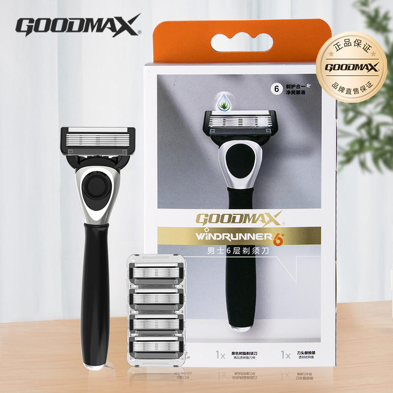 Maquinilla de Afeitar Manual Goodmax Windrunner de 6 Cuchillas con Mango de Bambú para Hombre, con Cuchillas de Repuesto