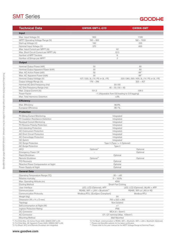 Inversor Trifásico Conectado a la Red Goodwe GW80K-SMT de 80KW, Grado Comercial e Industrial, Sistema de Monitoreo Avanzado, Clasificación IP66