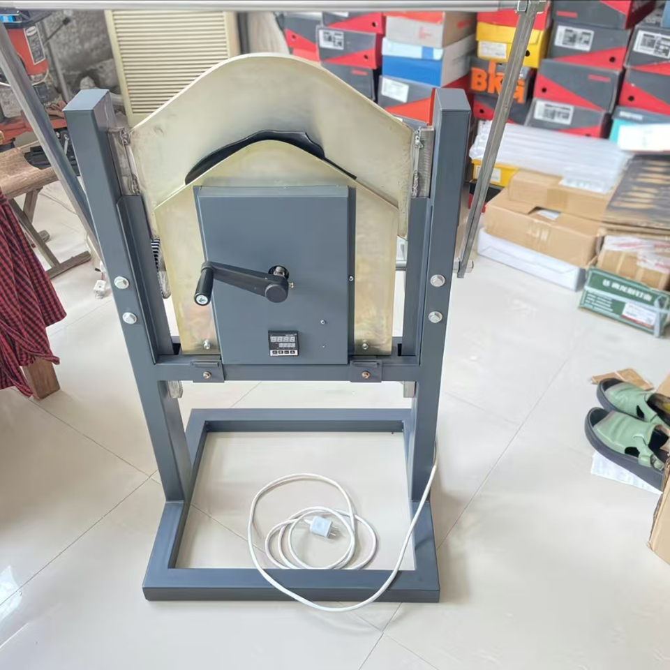 Herramientas para la fabricación de calzado Goodyear-Welt: Máquina manual para levantar, prensar y doblar el talón, con motor, engranajes y caja de cambios esenciales.