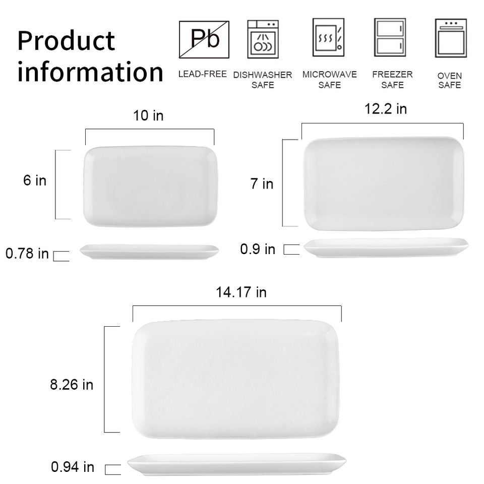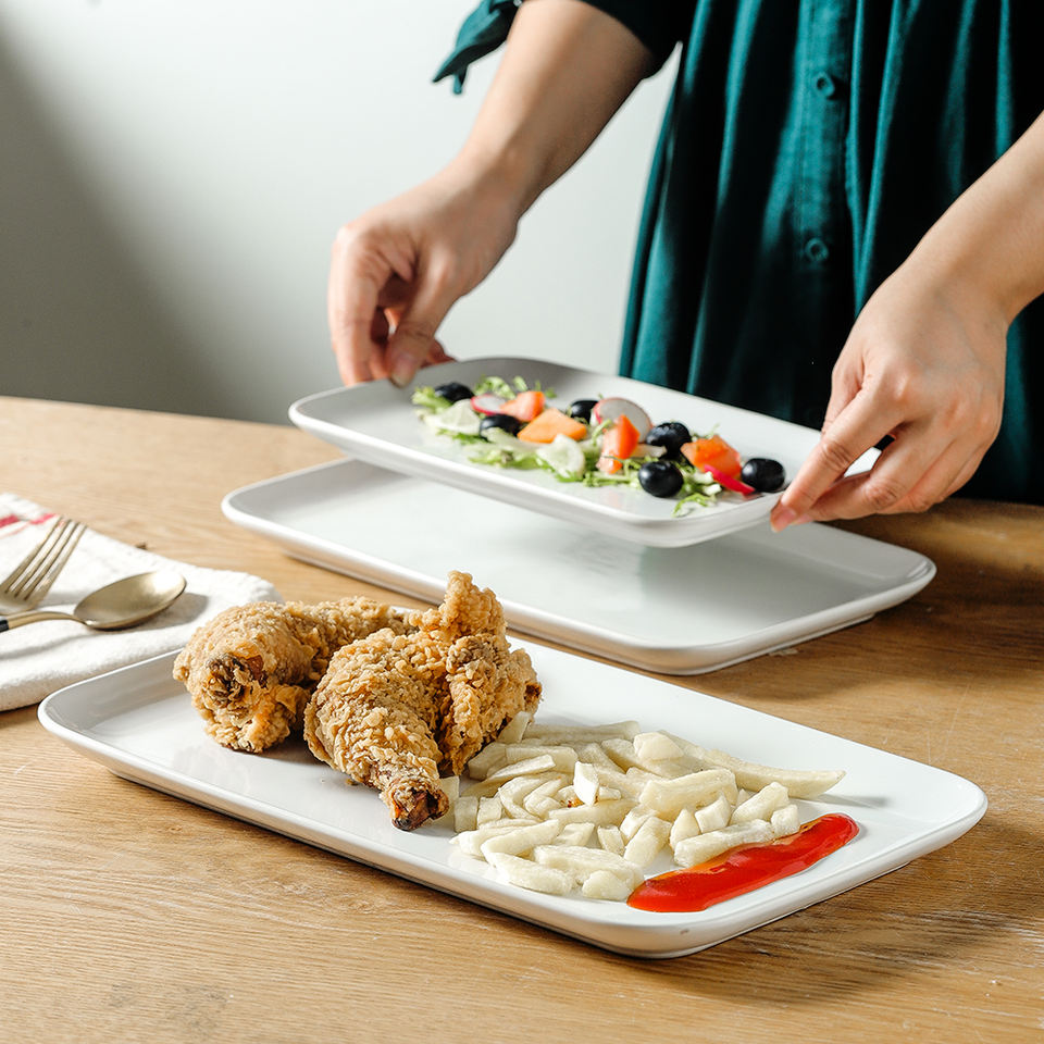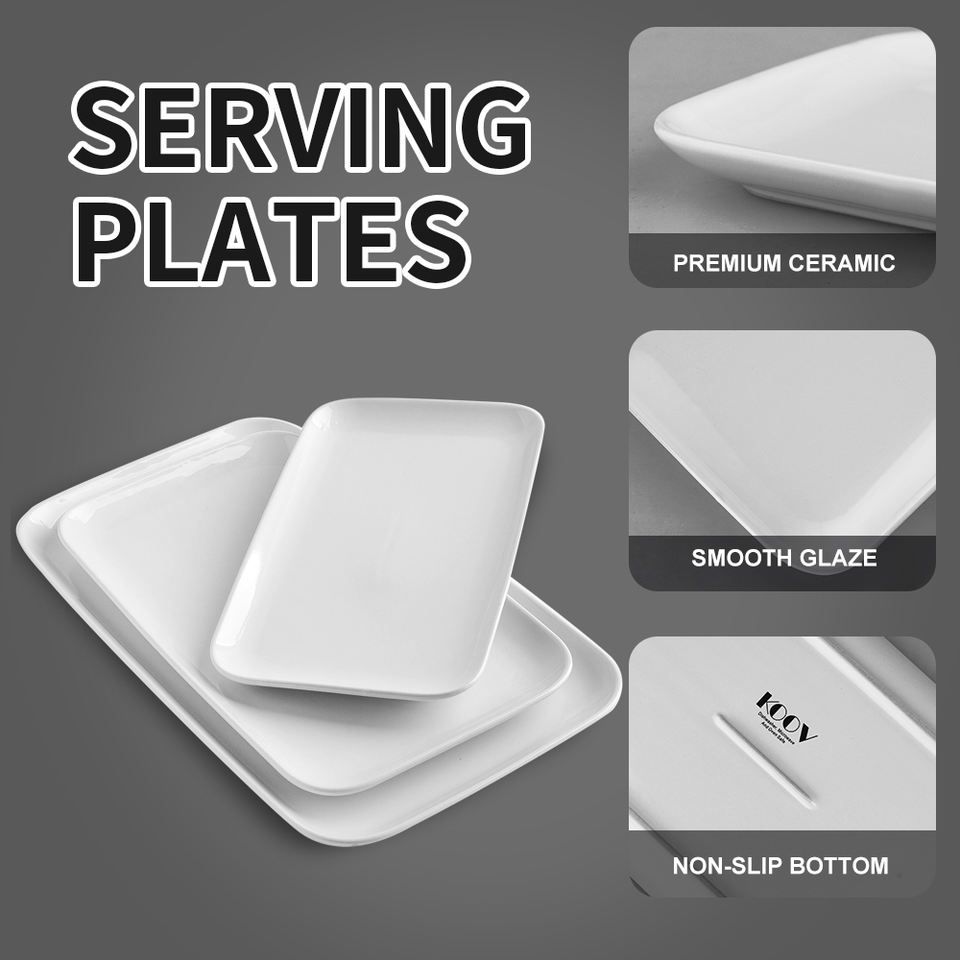 Google-platos de servicio rectangulares de cerámica, Juego de 3 estilos modernos de gran tamaño para Cocina