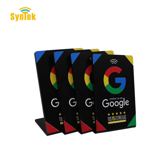 Expositor de Tarjetas NFC RFID Personalizado con Reseñas de Google - Soporte de Acrílico y PVC para Códigos de Mesa, Comunicación en Redes Sociales, Menú de Restaurante
