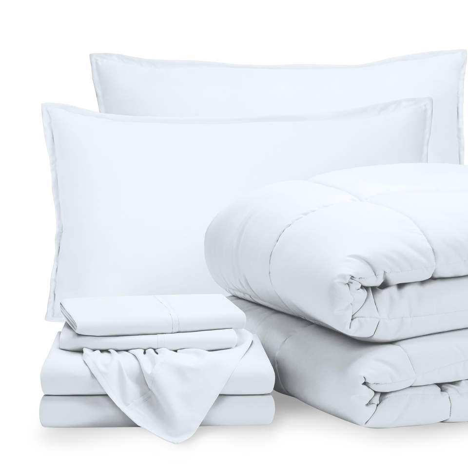 Juego de cama ultrasuave alternativo de plumón de ganso, juego de edredón con sábanas, cama de 7 piezas en una bolsa