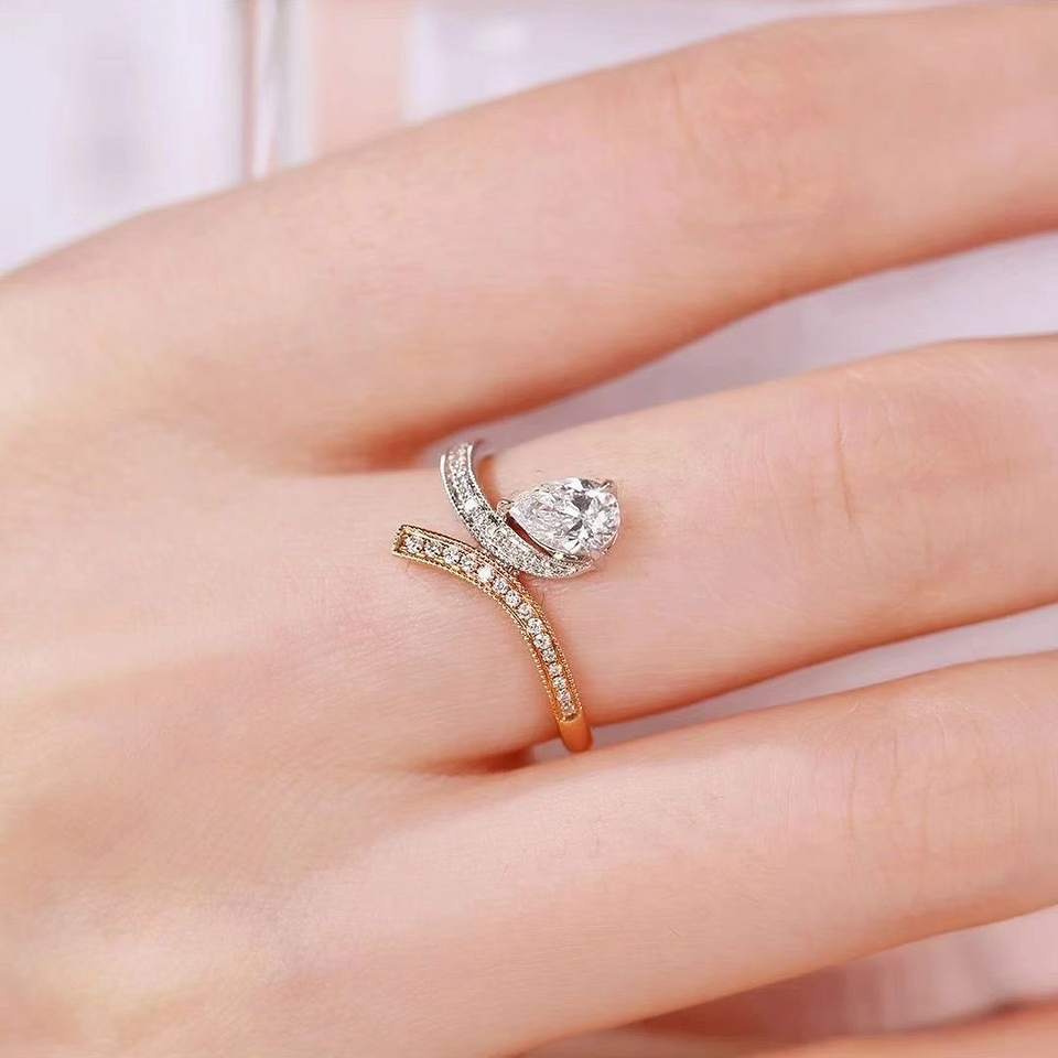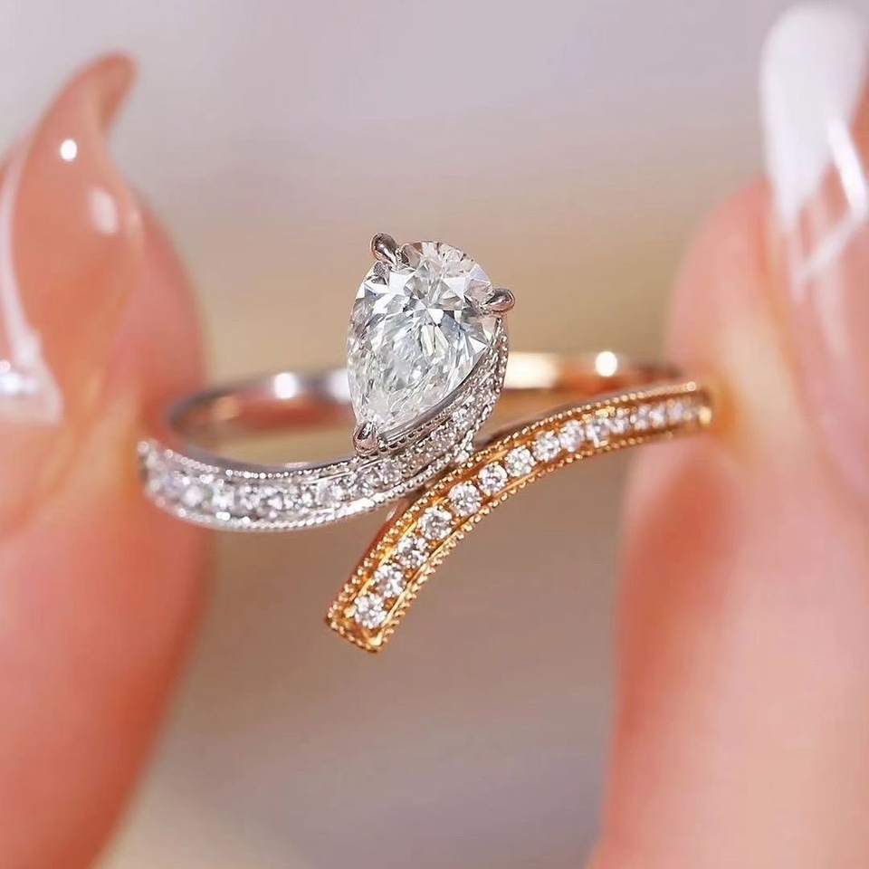 Anillo de Compromiso y Matrimonio de Oro Sólido de 10K, Dos Tonos, con Diamante Cultivado en Laboratorio, Corte Pera, Regalo de Aniversario para Mujer