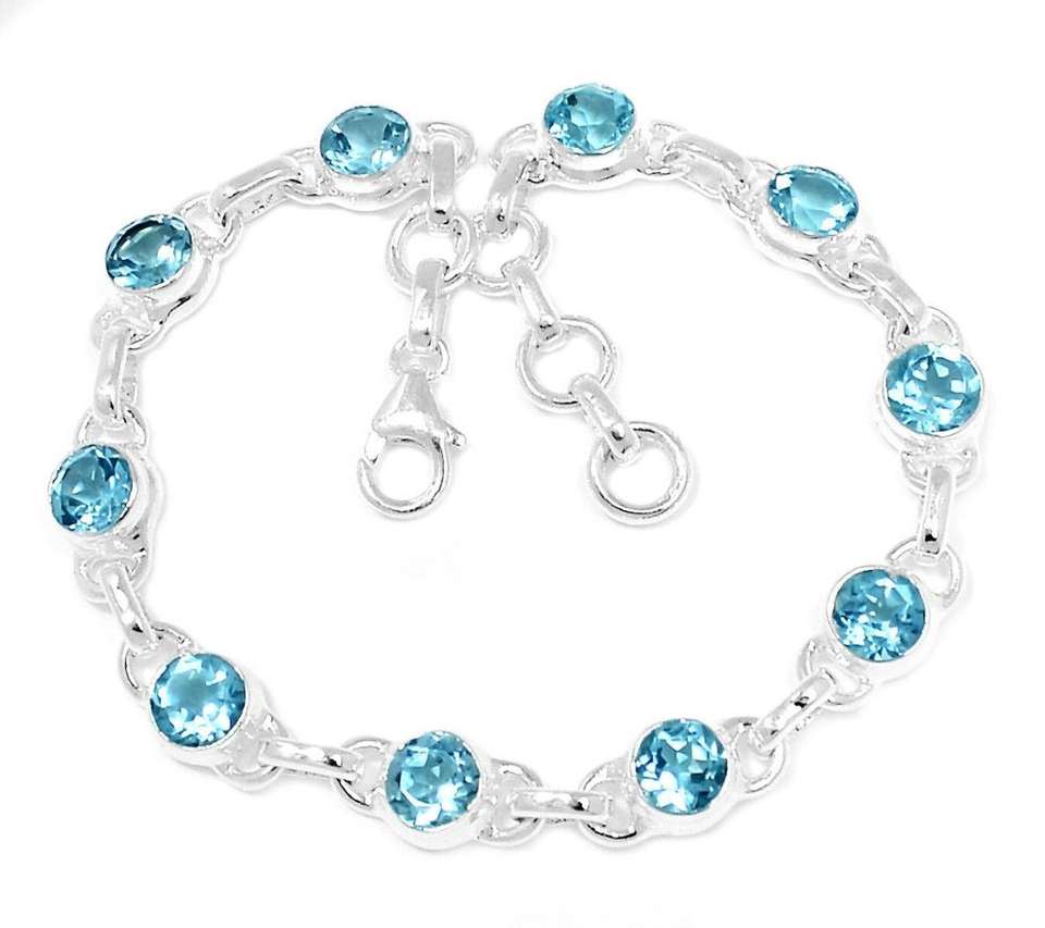 Nombre del producto:Topacio azul exclusivo 925 pulsera de plata esterlina joyería hecha a mano