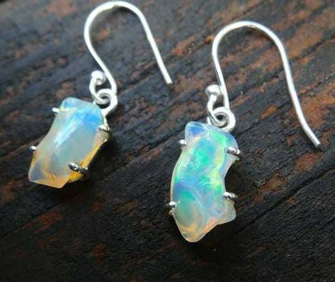 Etíope Opal Rough Natural Gemstone Pendiente Declaración de Plata Joyería