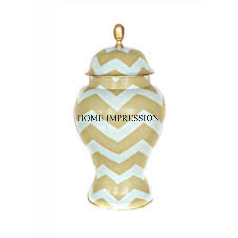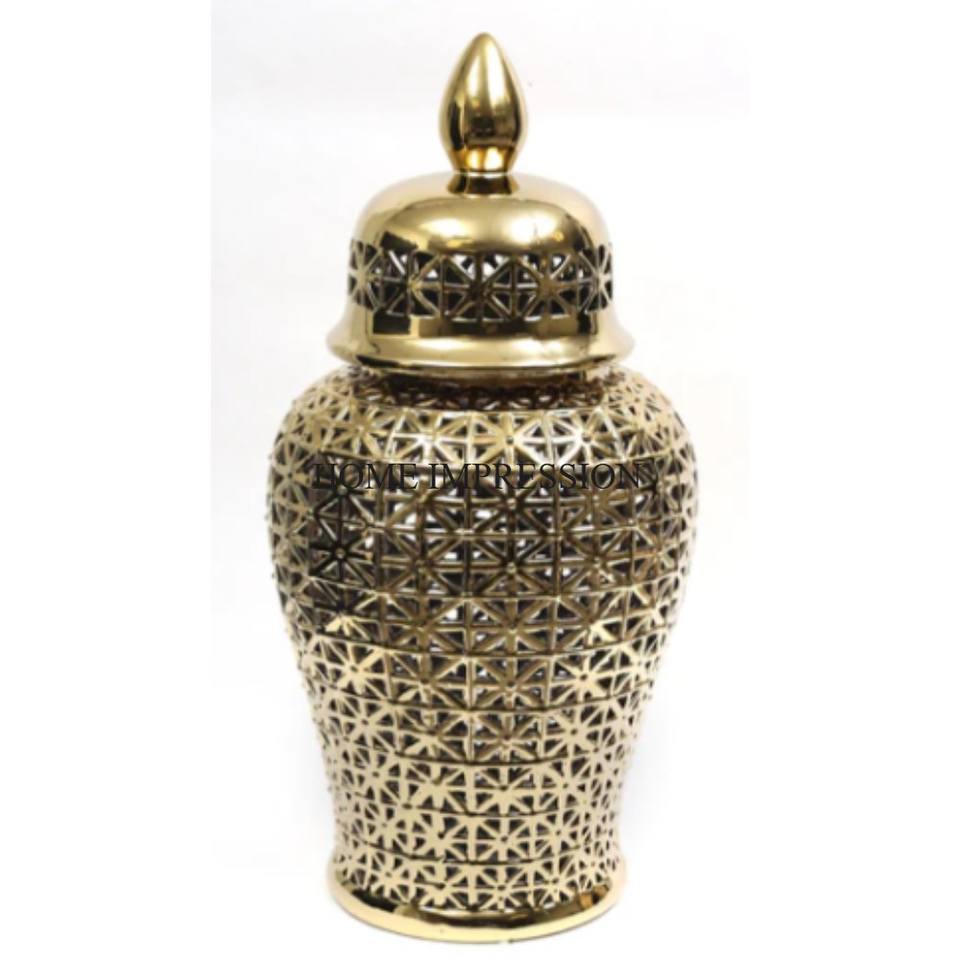 Precioso aspecto más elegante diseñador único arte creativo moderno de alto grado chapado en oro de metal hecho tarro de jengibre de proveedor indio