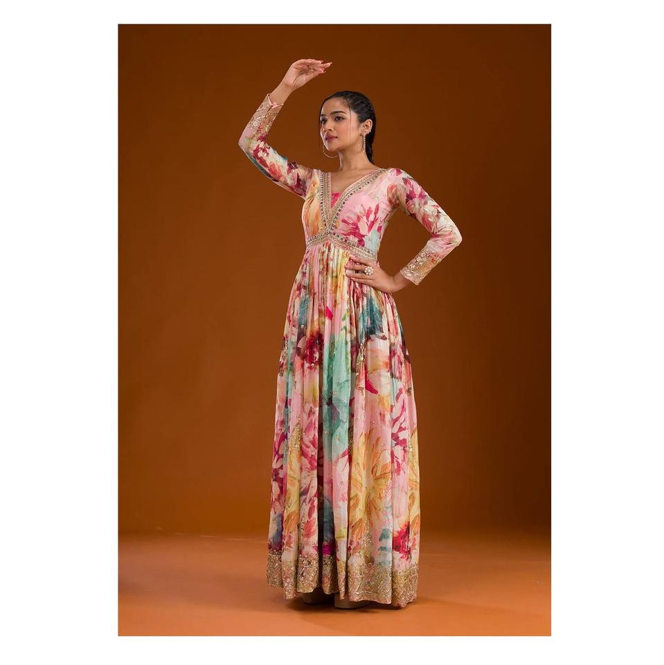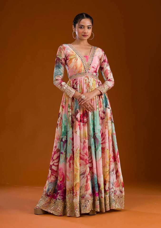Vestido moderno de proveedor indio con lentejuelas y estampados florales digitales para cada ocasión y fiesta