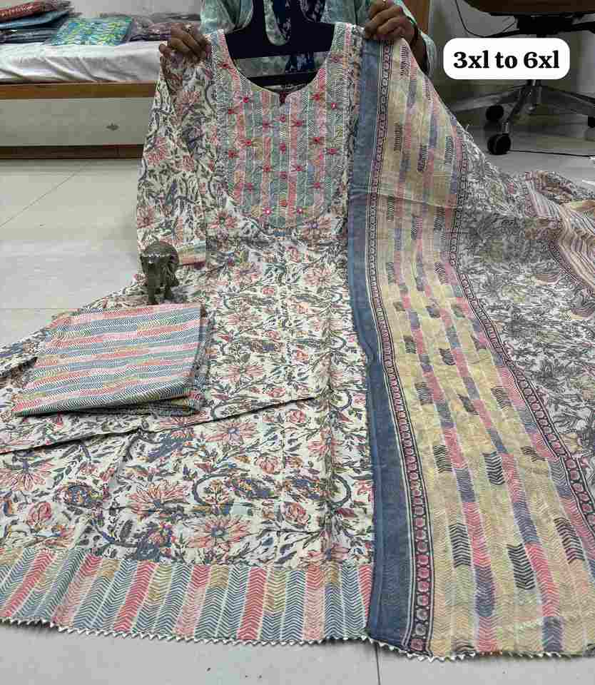 Product Name:Gorgeous Looking Cotton With Mirror Work Kurti Pant And Dupatta
