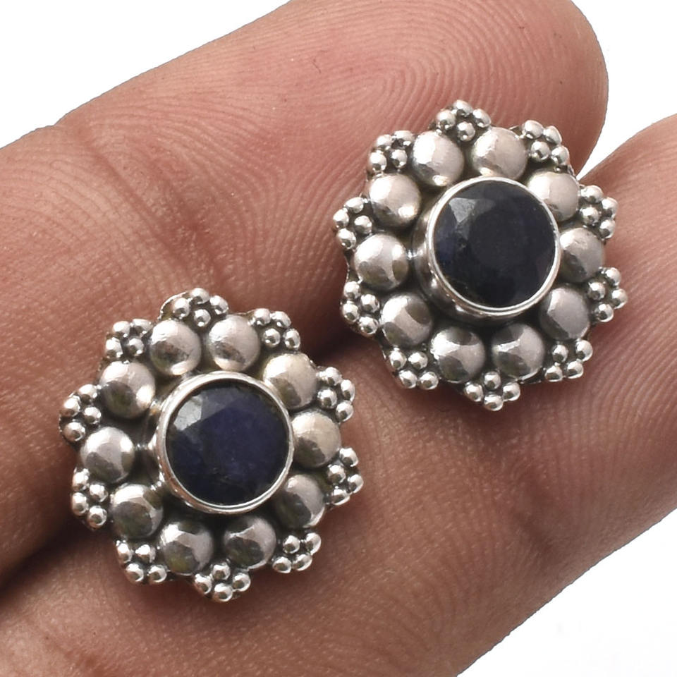 Precioso pendiente de tuerca de Plata de Ley 925, piedra preciosa de zafiro azul Natural, BohoJewelry para compromiso de boda, fabricante directo